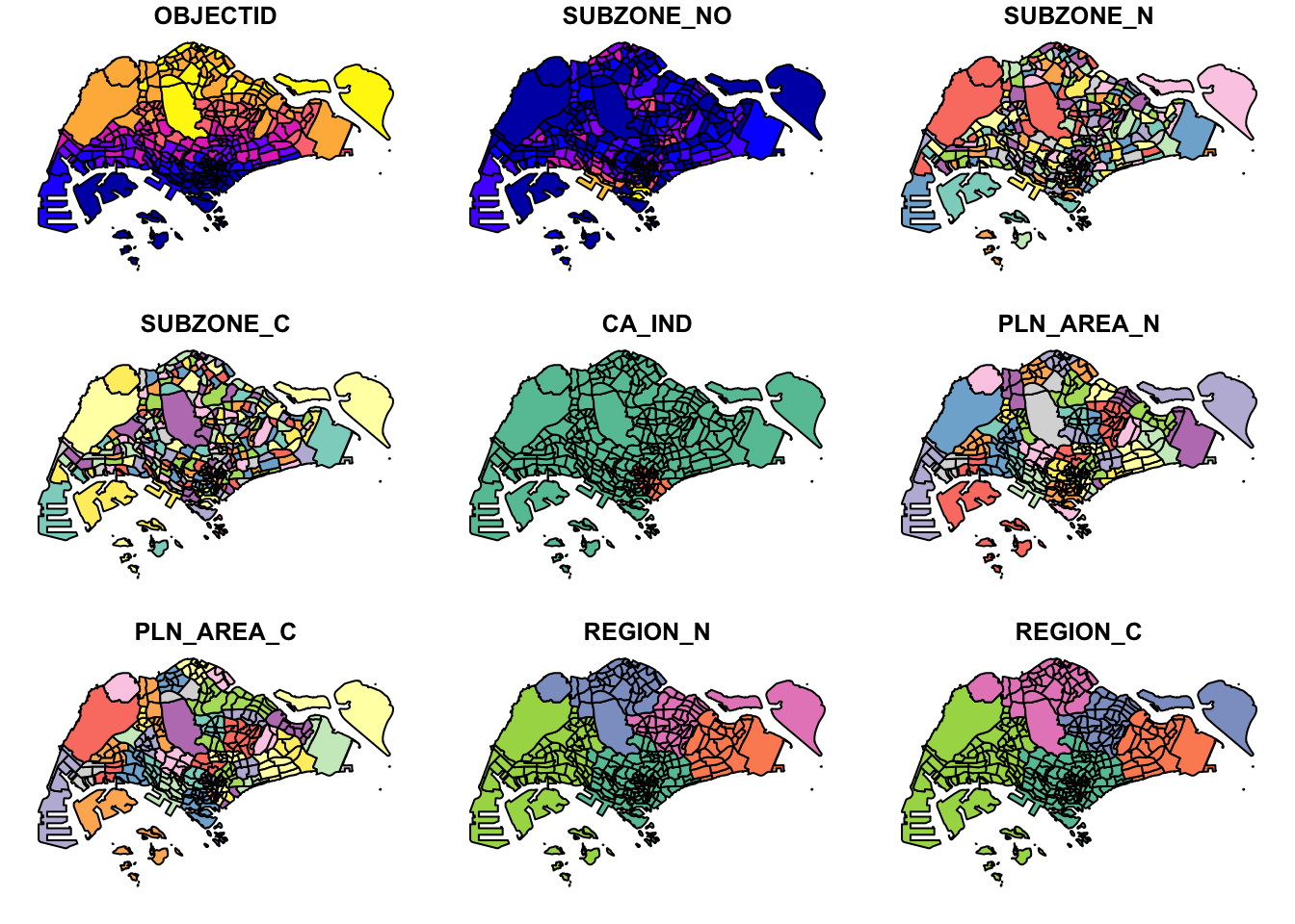 plot(mpsz)Warning: plotting the first 9 out of 15 attributes; use max.plot = 15 to plot