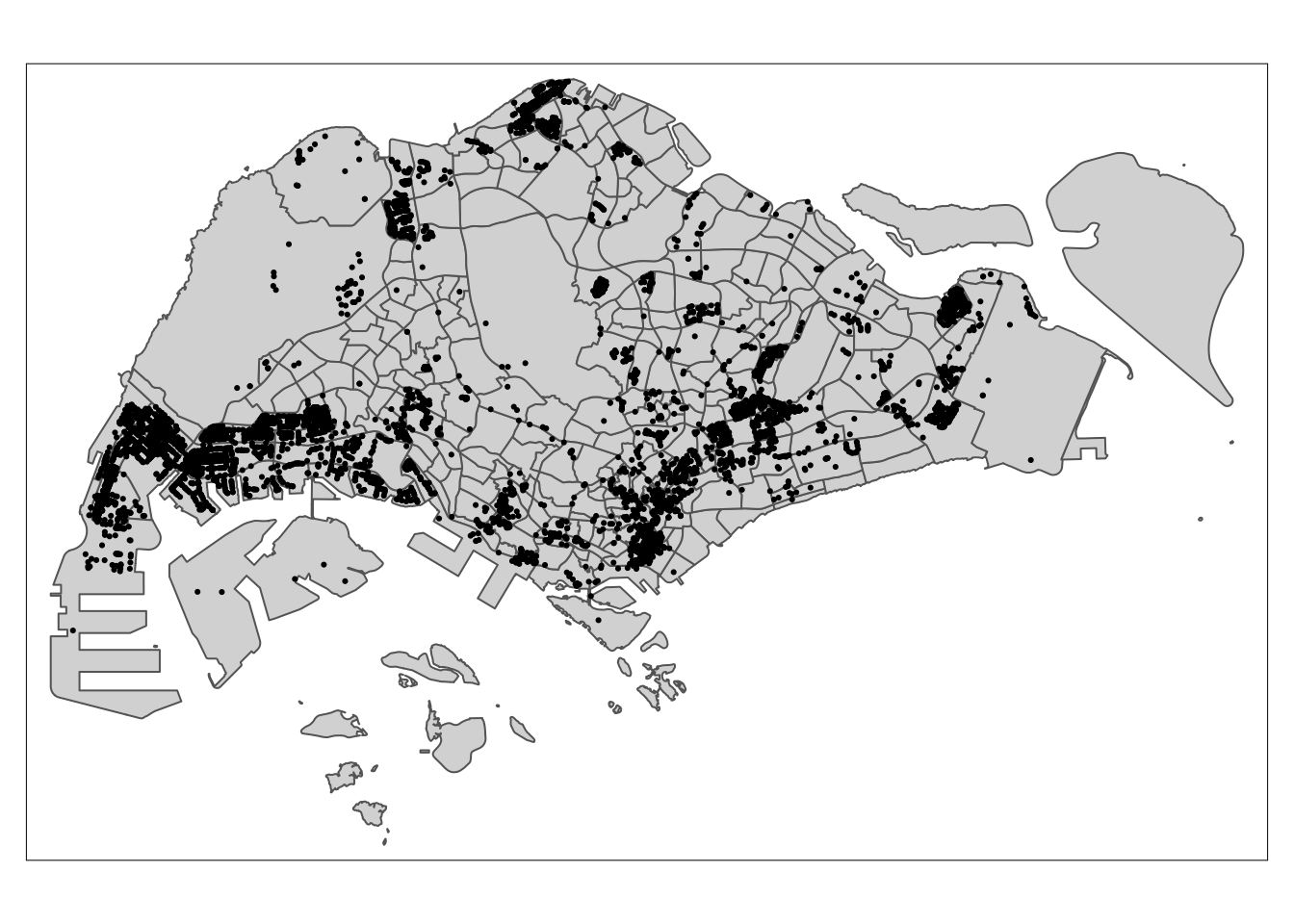 st_transform(crs = 3414)mpsz <- st_read(dsn = "data/geospatial/",