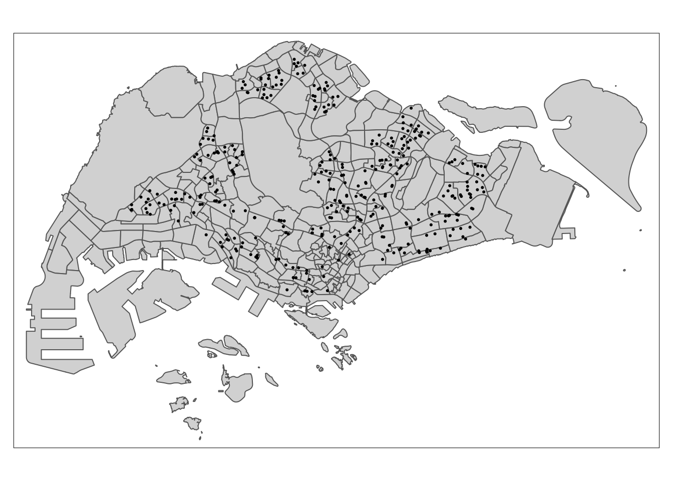 mpsz, business_sf))summary(mpsz$BUSINESS_COUNT) Min. 1st Qu. Median Mean 3rd Qu. Max.