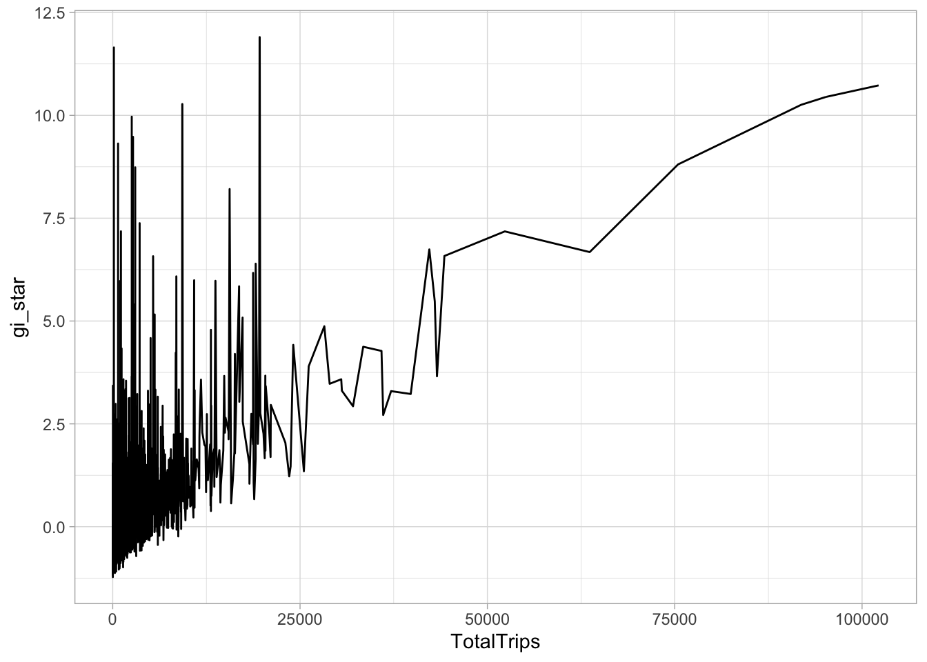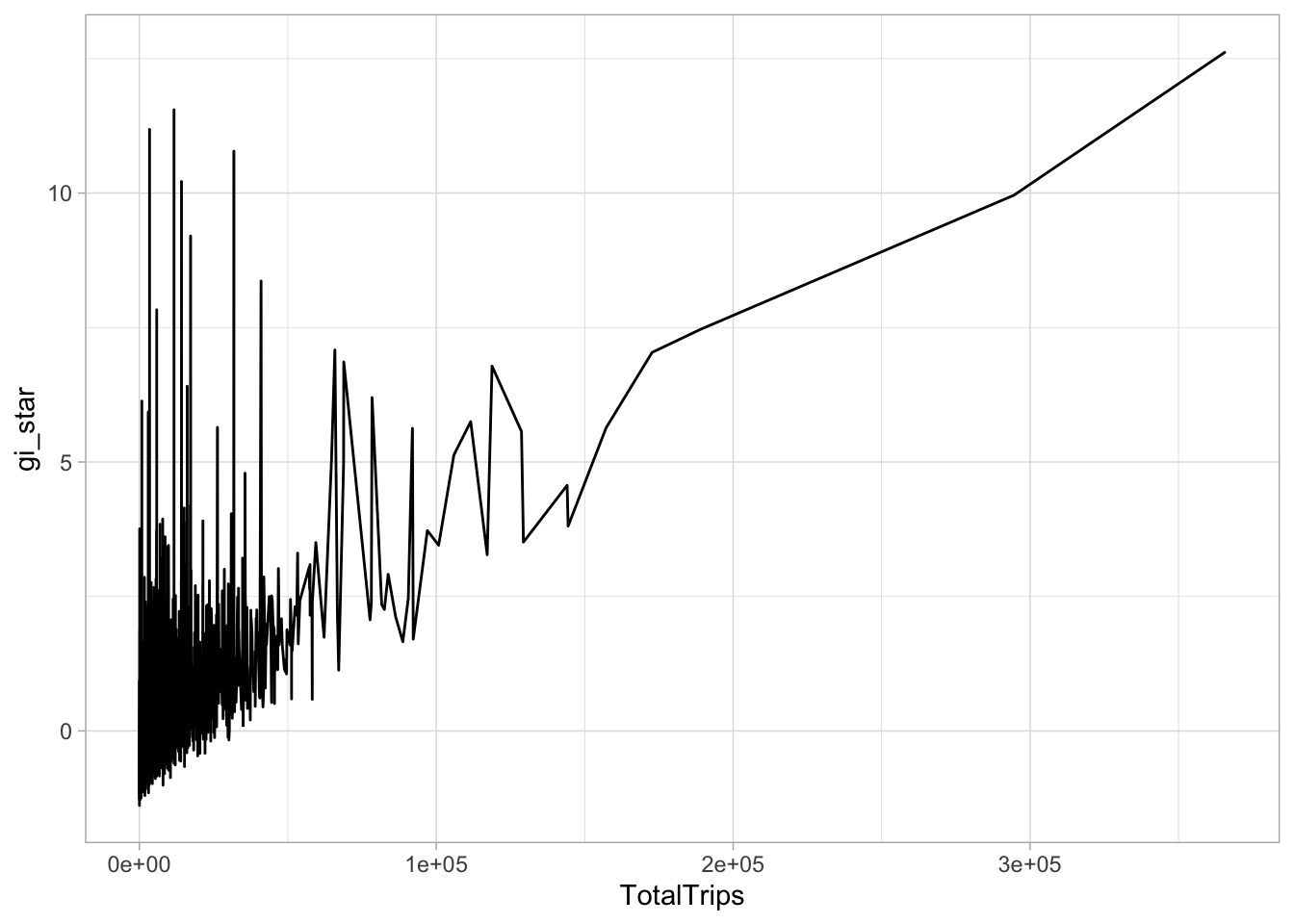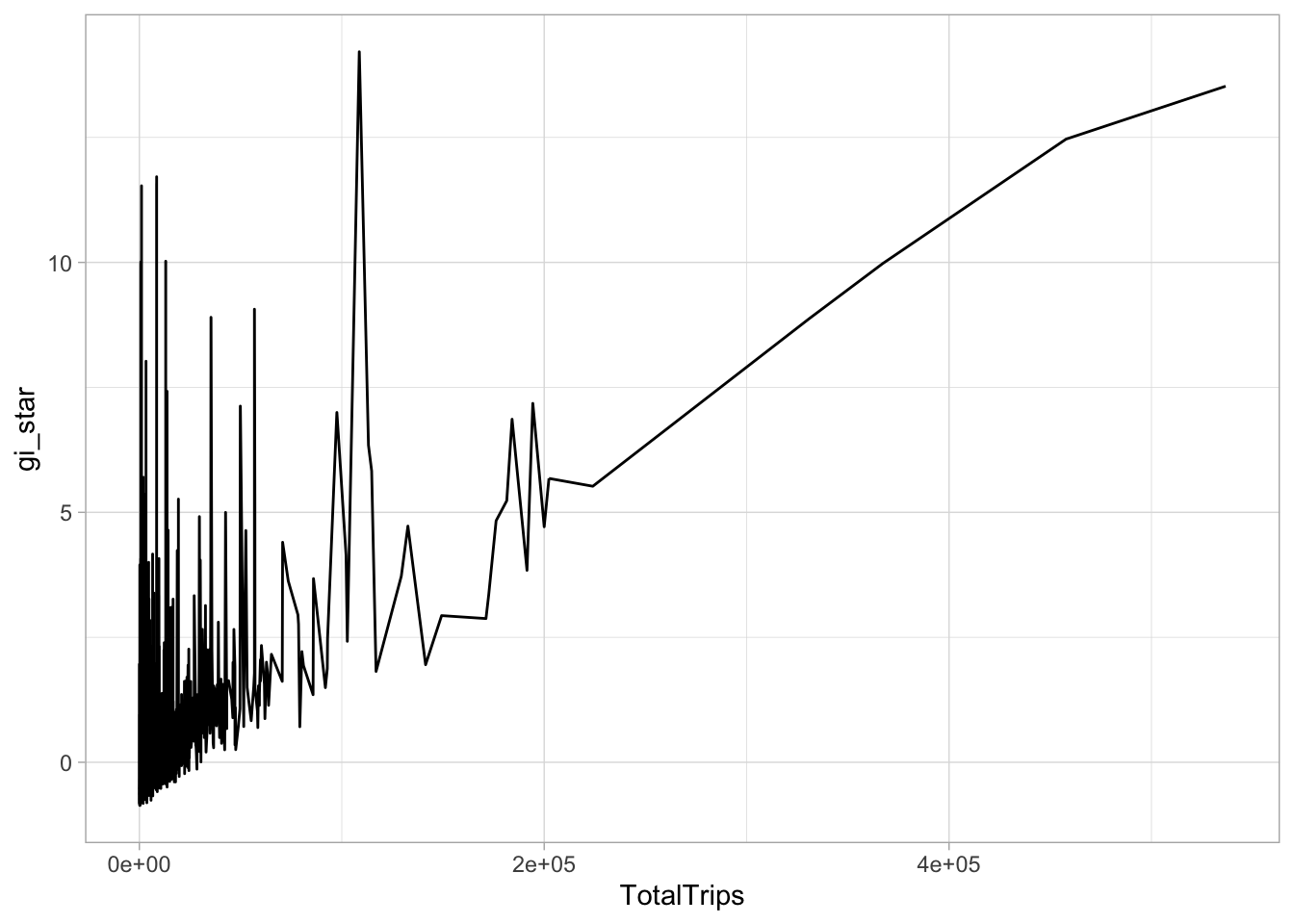 select(geometry, TotalTrips, gi_star)ggplot(data = cbg,